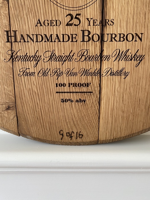 Several years ago the Van Winkle family launched the most limited and oldest release of bourbon in the history of the distillery. 710 bottles of 25-Year-Old Rip Van Winkle Whiskey, were packaged in a custom crystal decanter along with a box made from the wooden barrel staves that aged this 25-year-old whiskey. This release came from a mere 11 barrels distilled in the fall of 1989 at the family’s original distillery, Stitzel-Weller. Fast forward to today, the staves from the barrels were since used, but the Van Winkle family had 16 of these rarest barrel heads collecting dust in their storage unit (the other 5 were damaged or lost). In thinking about selling them, the Van Winkles knew they deserved a higher price for their rarity, but couldn’t put a number on something so priceless, nor did they feel comfortable pricing them above the standard mark up, so that is when they thought of a way to support charities that are important to us, especially during these times of need!